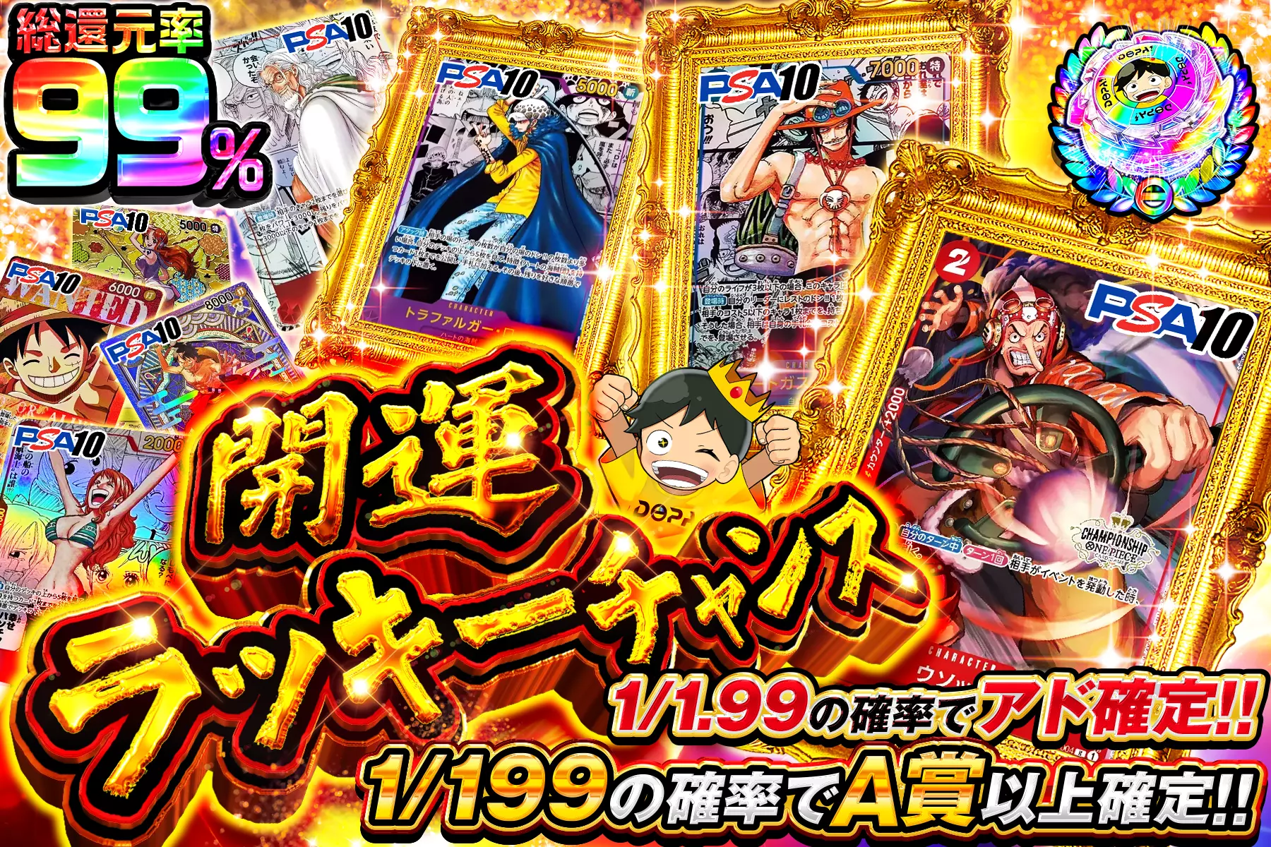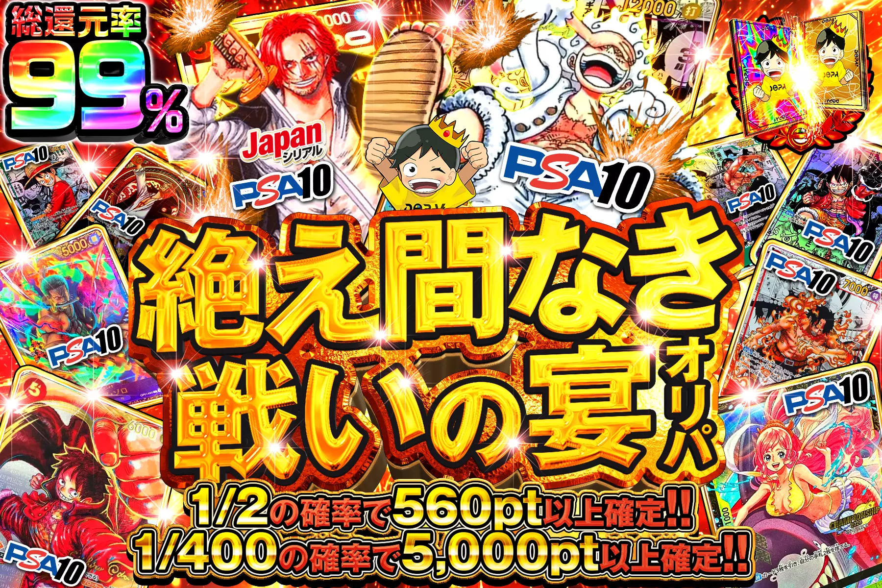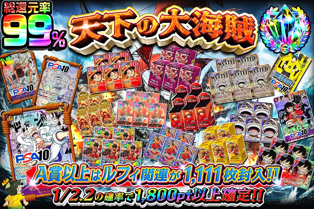 "プリン祭り!! " "総還元率98%!! 1/1.8の確率でアド確定!! CSプリンが8枚封入!! ※S賞は発送のみ"